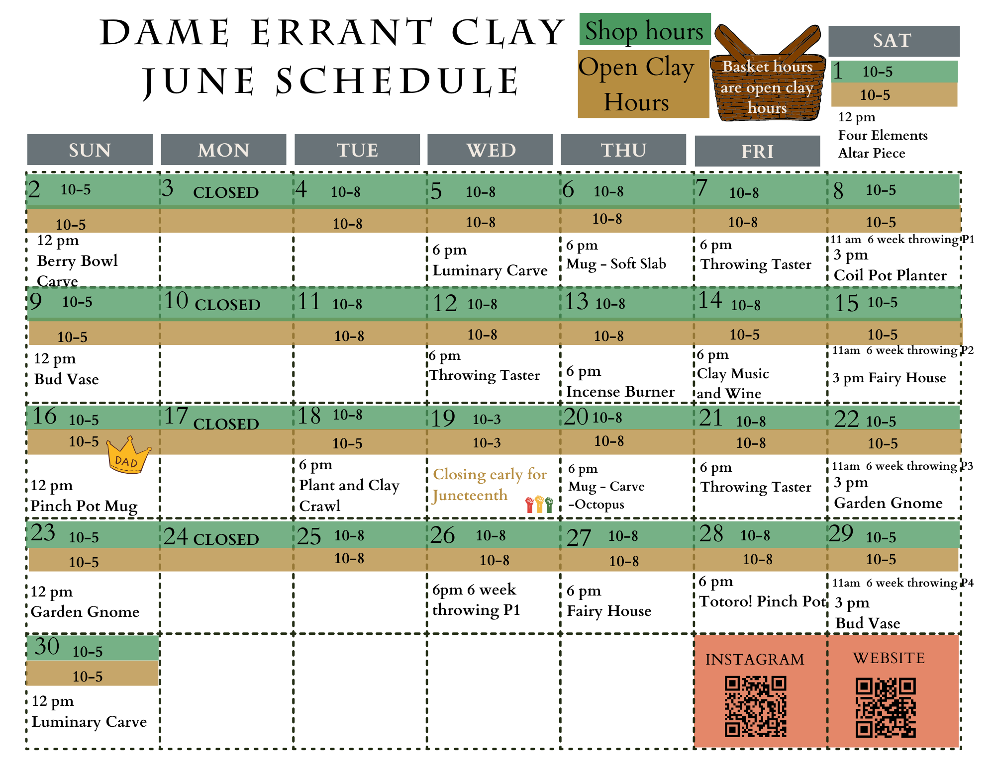 After creating, students choose one of our current glaze options. Pieces are left at Dame Errant to be fired and glazed per the selection by Dame Errant crew.