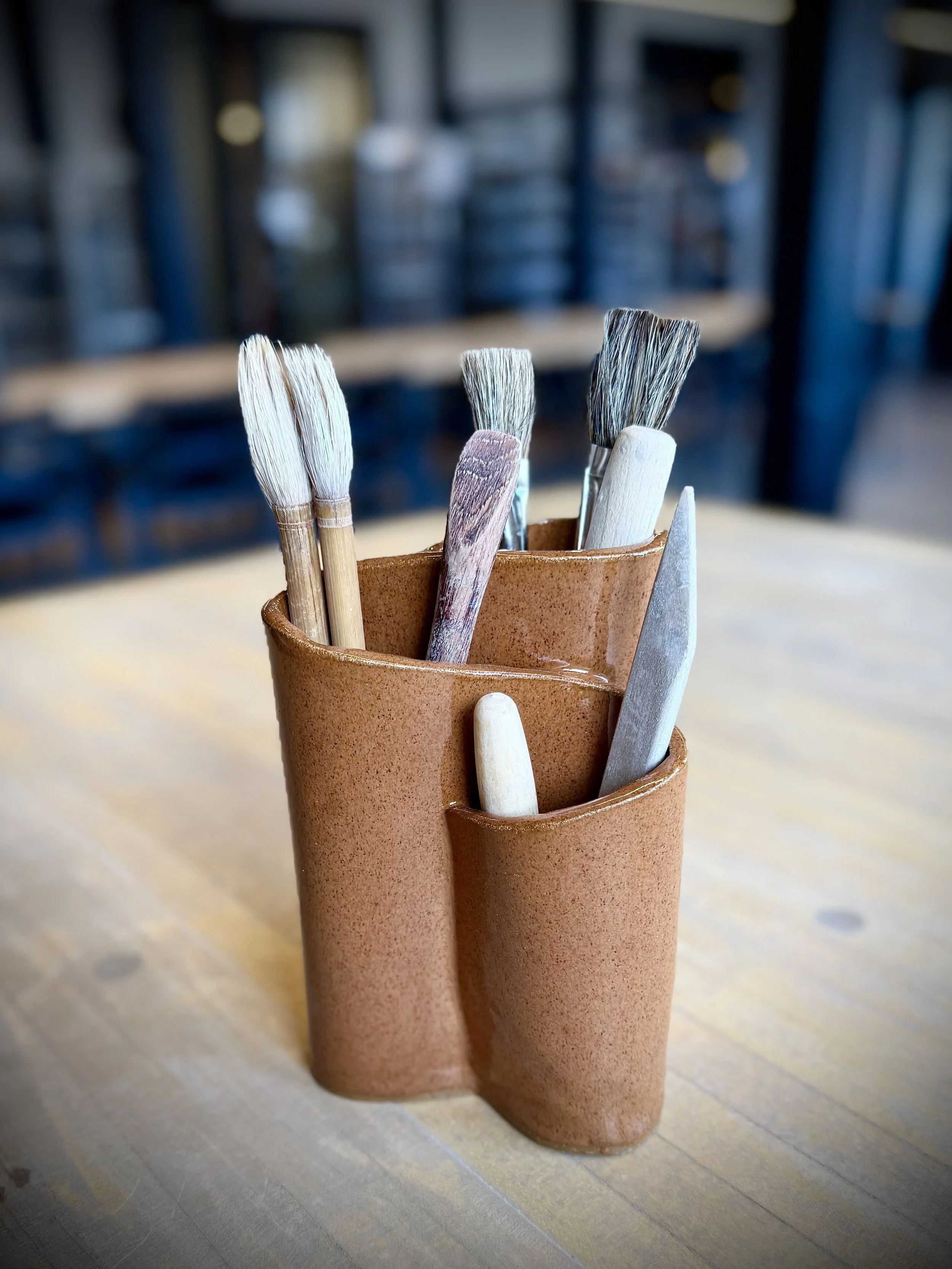 This is a great introductory workshop to working with slabs. While the process is simple, the result is an elegant, curving form that you can fill with flowers or utensils. It can be a unique decorative piece and also looks cute in a craft setting.